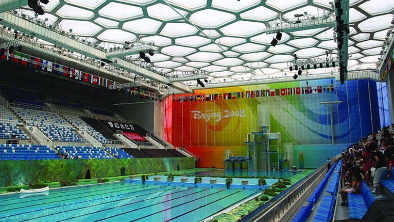 國家游泳中心位于北京奧林匹克公園內(nèi),2008年北京奧運會標(biāo)志性建筑物之一。2007年建設(shè),設(shè)計體現(xiàn)出“水立方”的設(shè)計理念,融建筑設(shè)計與結(jié)構(gòu)設(shè)計于一體,設(shè)計新穎,結(jié)構(gòu)獨特。