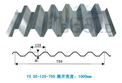X35-125-750壓型板,其使用十分廣泛,即可作為保溫外墻板,也可作為屋面底板,還可以作為樓承板。該板型外形美觀,便于運輸,承載力好,故而,在國內(nèi)的火力電廠,鋼結(jié)構(gòu)廠房中經(jīng)常見到.