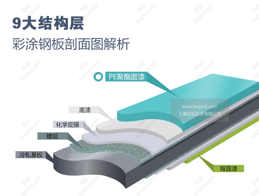 彩涂卷的涂料種類(lèi)有聚酯涂層(PE)、氟碳涂層(PVDF)、硅改性涂層(SMP)、高耐侯涂層(HDP)、酸涂層、聚氨脂涂層(PU)、塑料溶膠涂層(PVC)等。