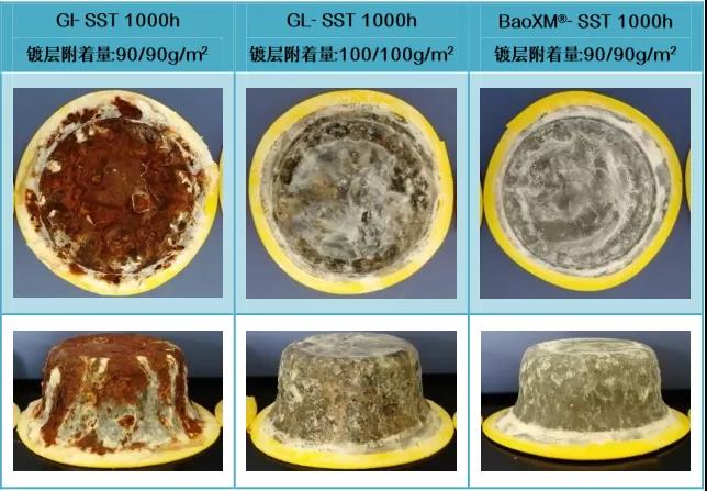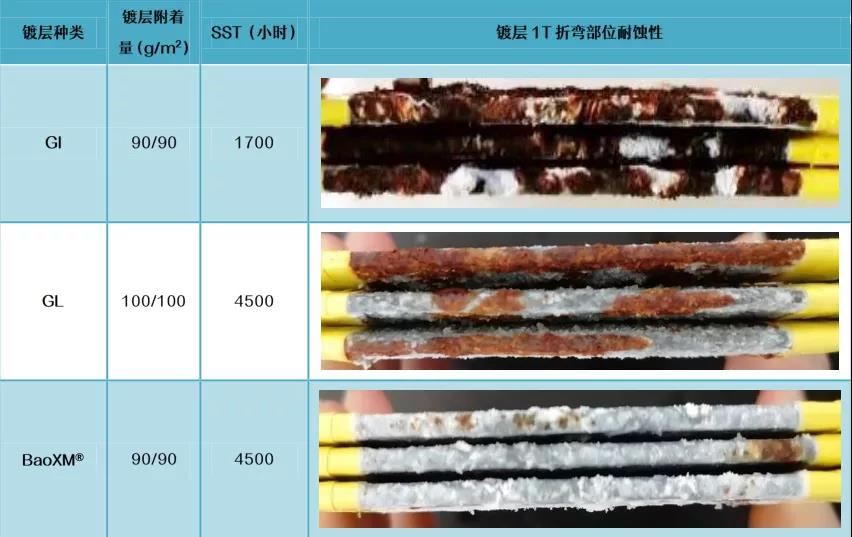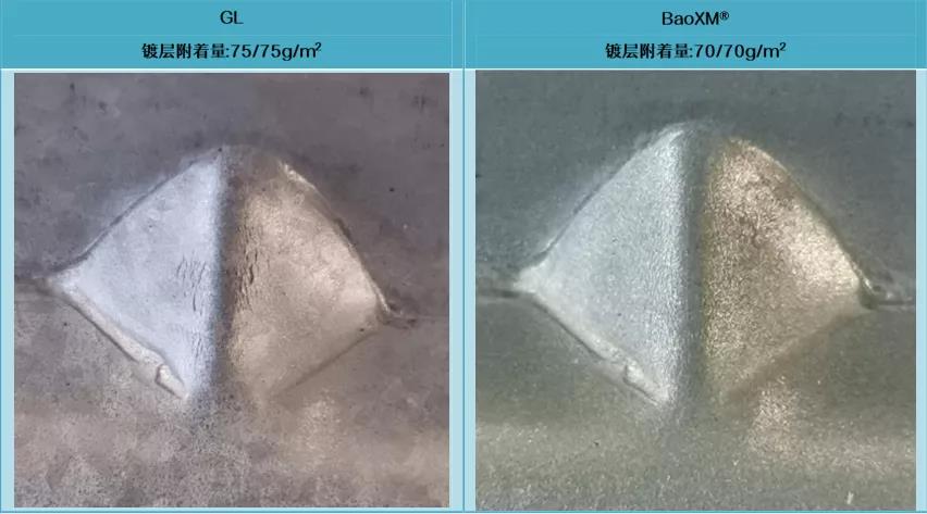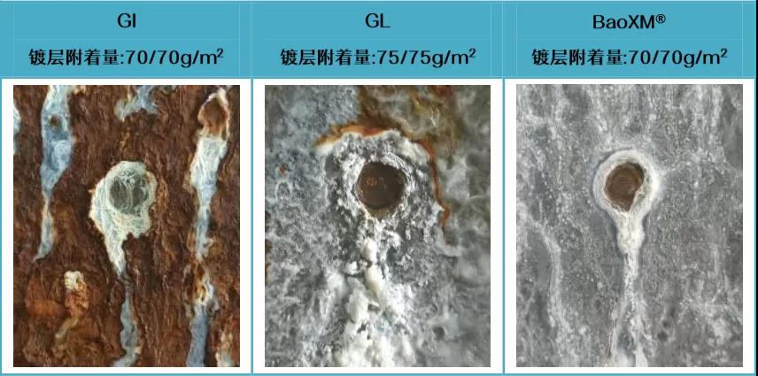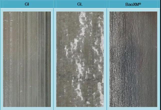 BaoXM®鍍層耐蝕性受切口影響最小,切口耐蝕性較GI、GL更為優(yōu)異。