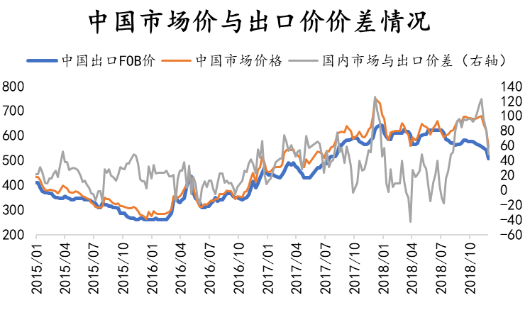 首先在11月下旬中國(guó)FOB價(jià)格出現(xiàn)大幅的下跌,鋼廠接受海外訂單量增加,并且11月中旬重點(diǎn)鋼企粗鋼日均產(chǎn)量195.15萬(wàn)噸。11月中旬重點(diǎn)鋼企粗鋼日均產(chǎn)量195.15萬(wàn)噸,旬環(huán)比增加3.51萬(wàn)噸,增長(zhǎng)1.83%。截至11月中旬末,重點(diǎn)鋼鐵企業(yè)鋼材庫(kù)存量為1327.11萬(wàn)噸,旬環(huán)比增加104.23萬(wàn)噸,上升8.52%。從鋼企日均產(chǎn)量可以看出,目前鋼材產(chǎn)量還是在不斷上升中,決定目前鋼市價(jià)格的還是下游的終端需求,但目前市場(chǎng)供大于求的狀況未有改變,并且國(guó)內(nèi)貿(mào)易商冬儲(chǔ)意向并不明顯,且部分地區(qū)出現(xiàn)停工現(xiàn)象,導(dǎo)致鋼廠出口意愿增加。另外中美貿(mào)易戰(zhàn)進(jìn)入90天“?;鹌凇?,這也利好鋼材的出口增加。綜合來(lái)看,12月份出口量或接近600萬(wàn)噸,同環(huán)比均會(huì)有所上漲。