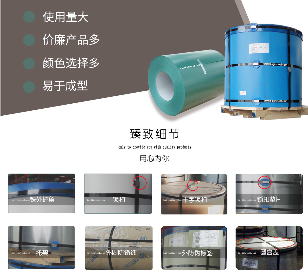 PE涂料對(duì)于材質(zhì)有良好的附件著性,彩涂鋼板易于加工成型,價(jià)廉且產(chǎn)品多,顏色和光澤的選擇余地大。在一般環(huán)境直接曝露下,基防蝕年可長(zhǎng)達(dá)7-8年,但于工業(yè)環(huán)境或污染嚴(yán)重的地區(qū),其使用壽命會(huì)相對(duì)降低,且聚脂涂料對(duì)耐紫外光性與涂膜耐燁化性,并不理想,因此PE涂料的使用仍受到若干限制,一般用在空氣污染不嚴(yán)重的地區(qū)或需多次成型加工的產(chǎn)品。寶鋼P(yáng)E聚酯彩涂板在一般環(huán)境下具有7年的質(zhì)保年限。