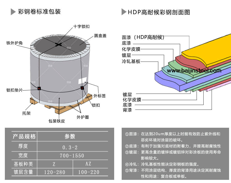 注:本網站數(shù)據(jù)部分來源寶鋼彩涂板企業(yè)標準BQB/440 -2014 ,寶鋼彩涂板產品手冊,及工程案例。