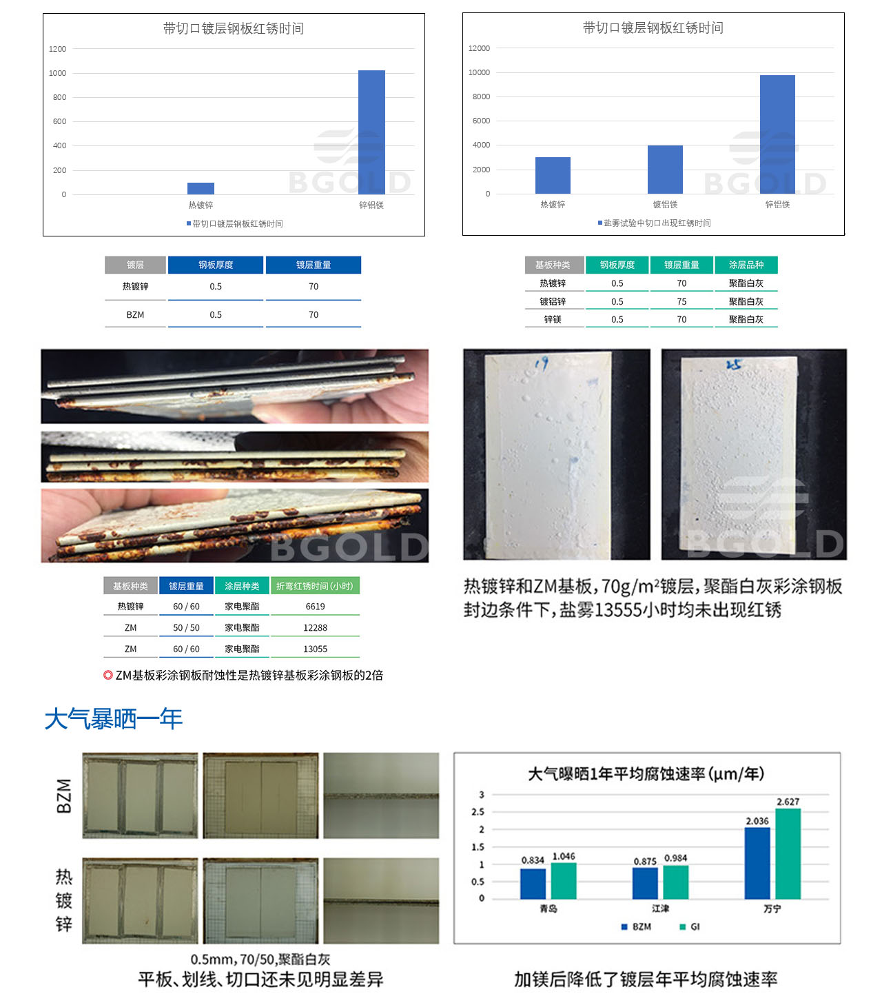 產(chǎn)品特點(耐蝕性:切口和折彎后耐蝕性是熱鍍基板彩涂2~3倍)