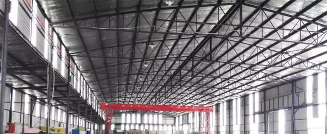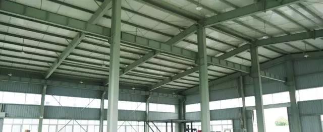 ▼彩鋼瓦屋頂廠房內(nèi)部結(jié)構(gòu)。